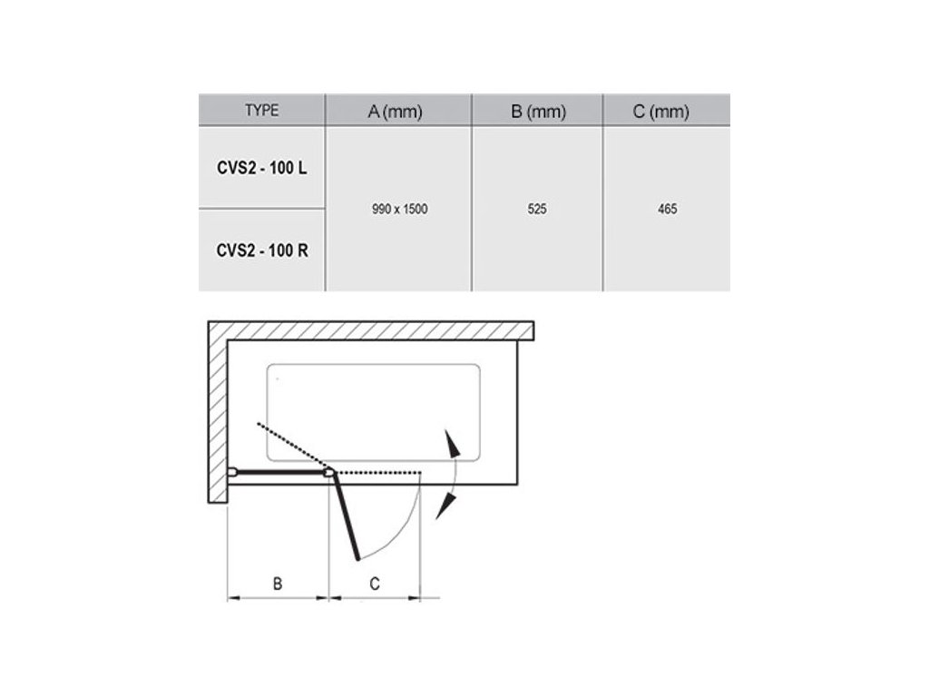 Ravak Chrome Vanová zástěna 100 levá Transparent lesk 7QLA0C00Z1 CVS2-100