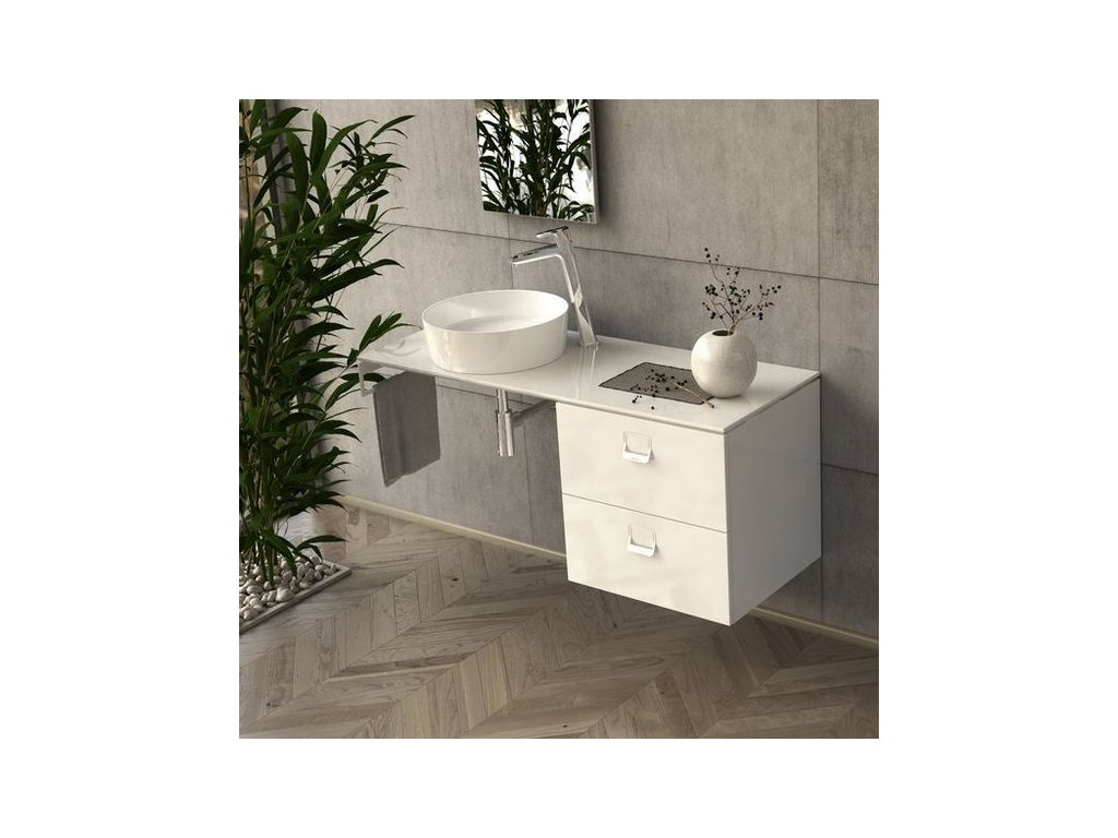 Otvor pro umyvadlo nebo stojánkovou baterii není předvrtán. To umožňuje umístit umyvadlo na desku dle vlastní potřeby (pod skříňkou pouze uprostřed) i libovolné umístění stojánkové baterie. Kombinací desky se skříňkou vznikne velkorysý úložný i odkládací prostor. Pokud je deska umístěna na závěsnou skříňku z jedné strany, je nutné z druhé strany desku podepřít pomocí konzole desky Balance/Comfort 1200. Pod desku lze přimontovat věšák ručníků Comfort v bílé barvě.