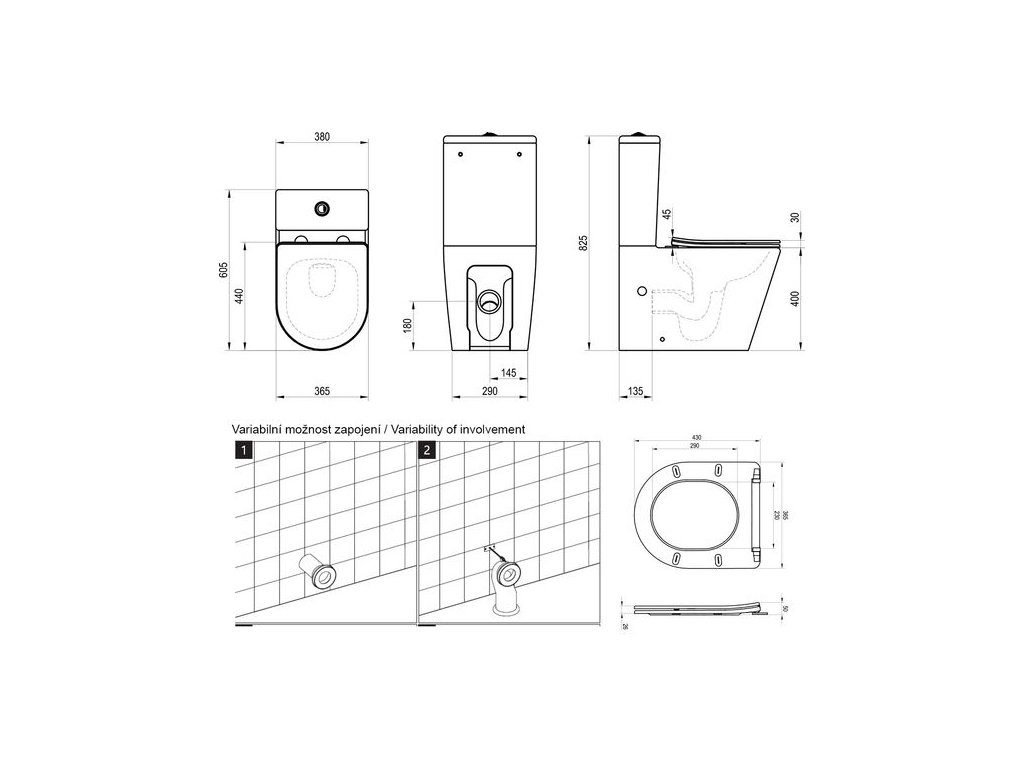 - připojení na odpad - vario: zadní/spodní zapojení