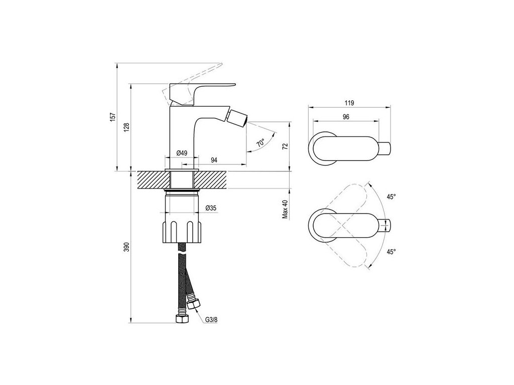 Bidetová stojánková vodovodní baterie je určena pro montáž přímo do bidetu. Elegance je krása, která vychází z vyváženosti. Ta se objevuje v každém detailu baterie. Plynulost vody se potkává se stabilitou kovu. Jemné zaoblení ramínka s pevností těla. A výrazná solidní páka se zapuštěným perlátorem.
