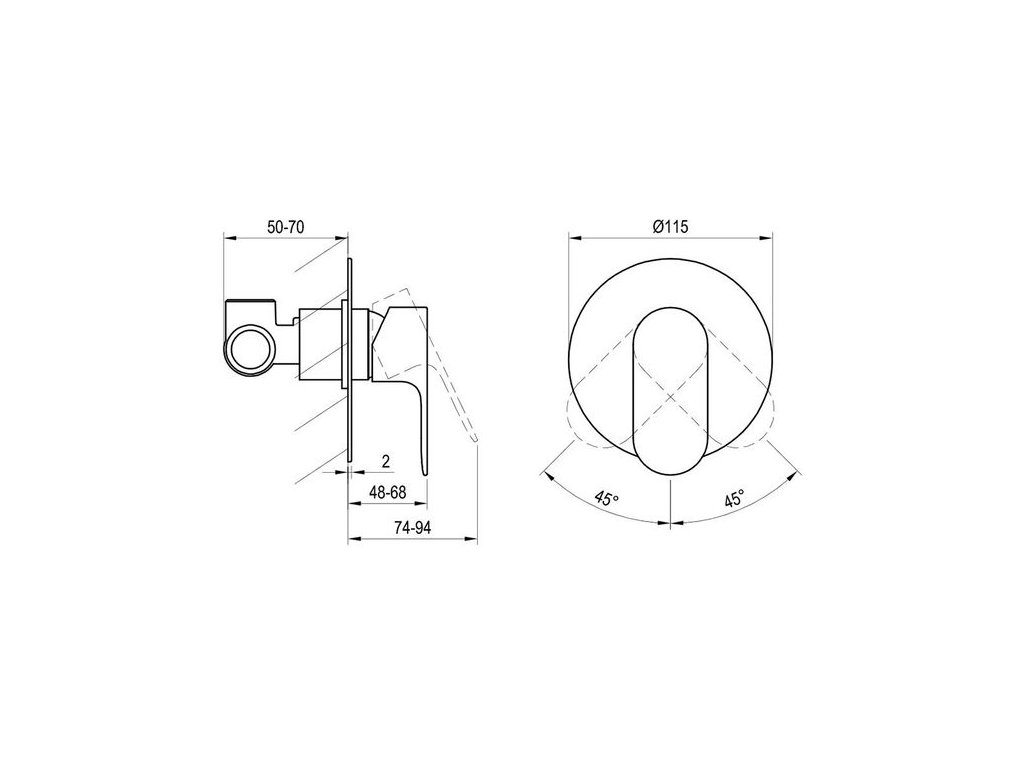 Tato podomítková baterie je celotělová a instaluje se přímo do zdi.