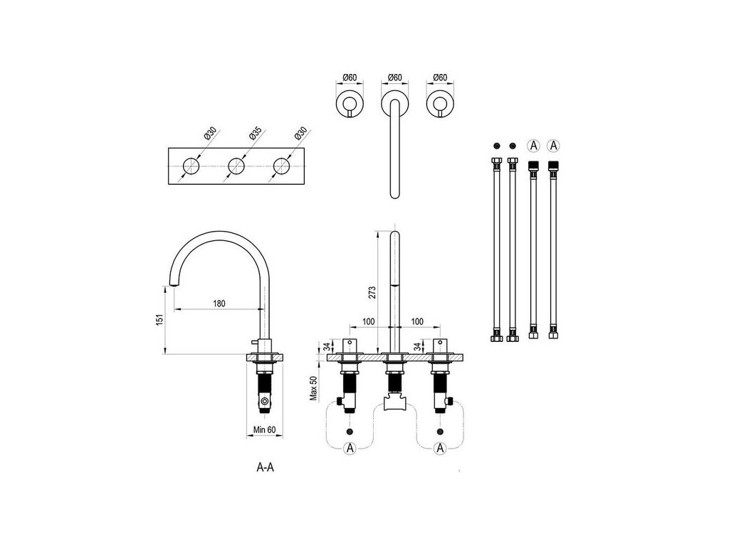 - připojovací hadičky: flexibilní 450 mm, průměr DN6, G3/8