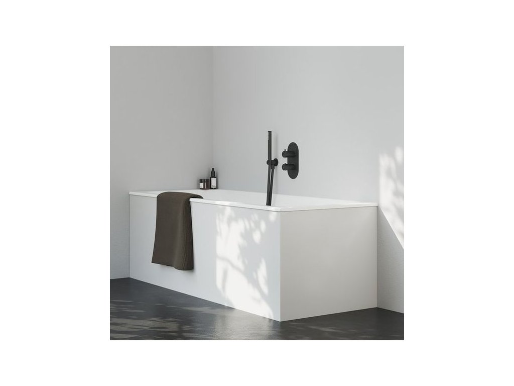 Přirozená krása této podomítkové baterie vychází z pečlivě navržených proporcí každé její části. Subtilní otočná páka reguluje průtok a teplotu vody. Přepínač umožňuje přecházet z napouštění vany ke sprchování, ve sprchovém koutu slouží k přepínání mezi hlavovou a ruční sprchou.