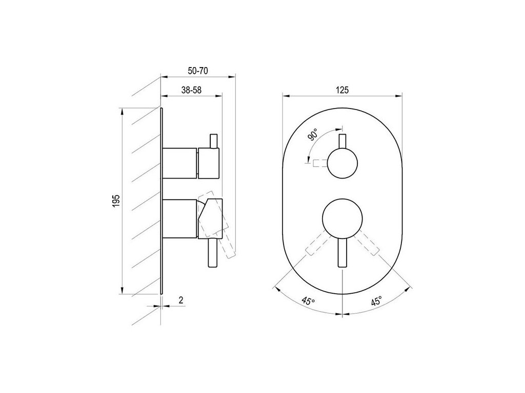 - provedení: 2-cestná, s přepínačem, bez tělesa – je určená pro R-box Vertical O2 RB 07E.50 (který naleznete v příslušenství produktu)