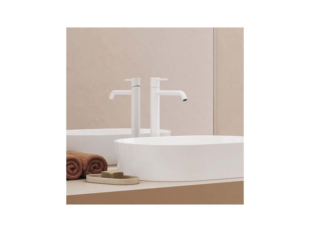 Extra prodloužená umyvadlová stojánková baterie se skvěle hodí k umyvadlům na desku. Přirozená krása této umyvadlové stojánkové vodovodní baterie vychází z pečlivě navržených proporcí každé jejich části. Utilitární design je pevným základem její jedinečnosti. Proto tato baterie vkusně doplní jakoukoliv koupelnu. Nebude na sebe strhávat pozornost, ale její krása vás bude těšit i po letech.