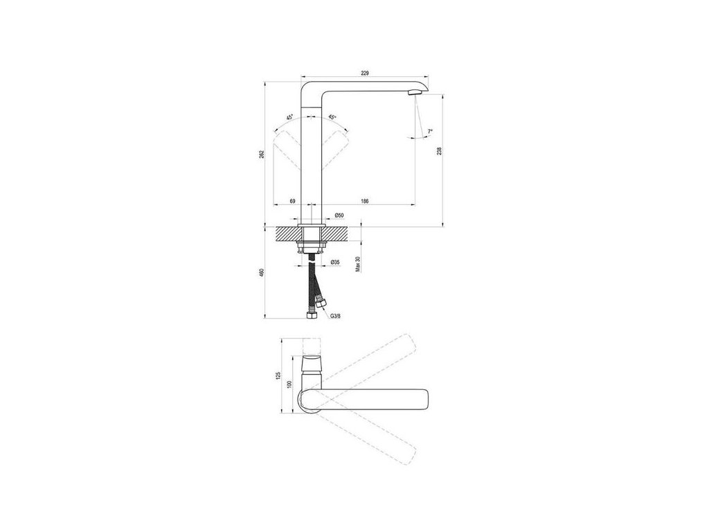 - připojovací hadičky: flexibilní 400 mm, průměr G3/8