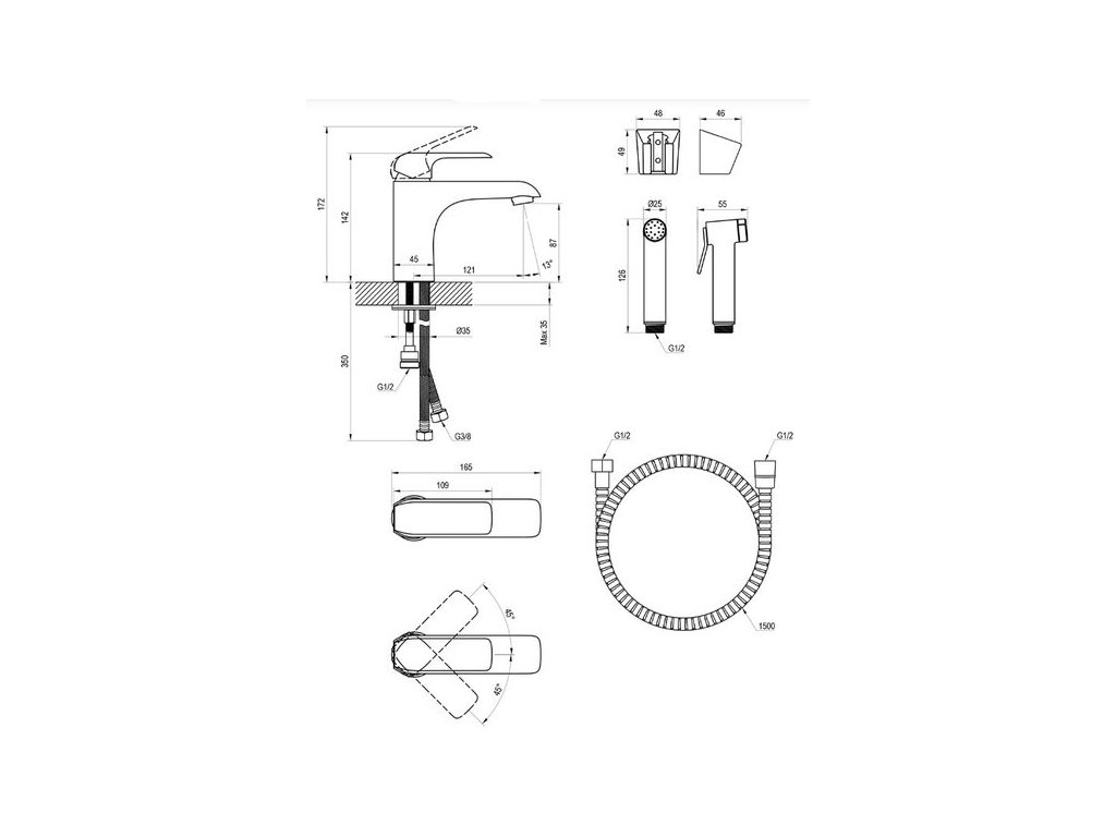 - provedení: s ruční bidetovou sprškou se zpětným ventilem