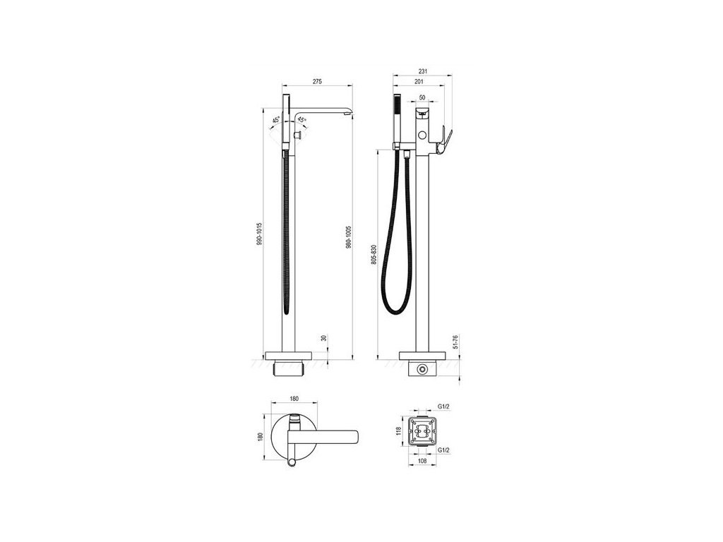 Zapojení vody do R-boxu je na kolmo k vaně. Základní těleso RB 07A.50 není součástí podlahové baterie FL 080.20BL.RB07A a je nutné jej dokoupit. R-box obsahuje materiál pro přichycení k podlaze, nezahrnuje přípojky pro vedení vody ani jiný vodoinstalační materiál. Na vnější čištění doporučujeme používat přípravek RAVAK Cleaner Chrome.