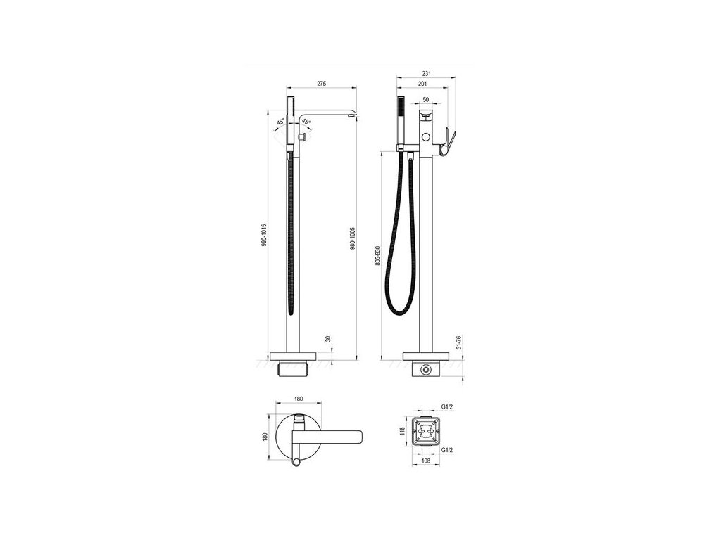 - vhodná: k volně stojícím vanám