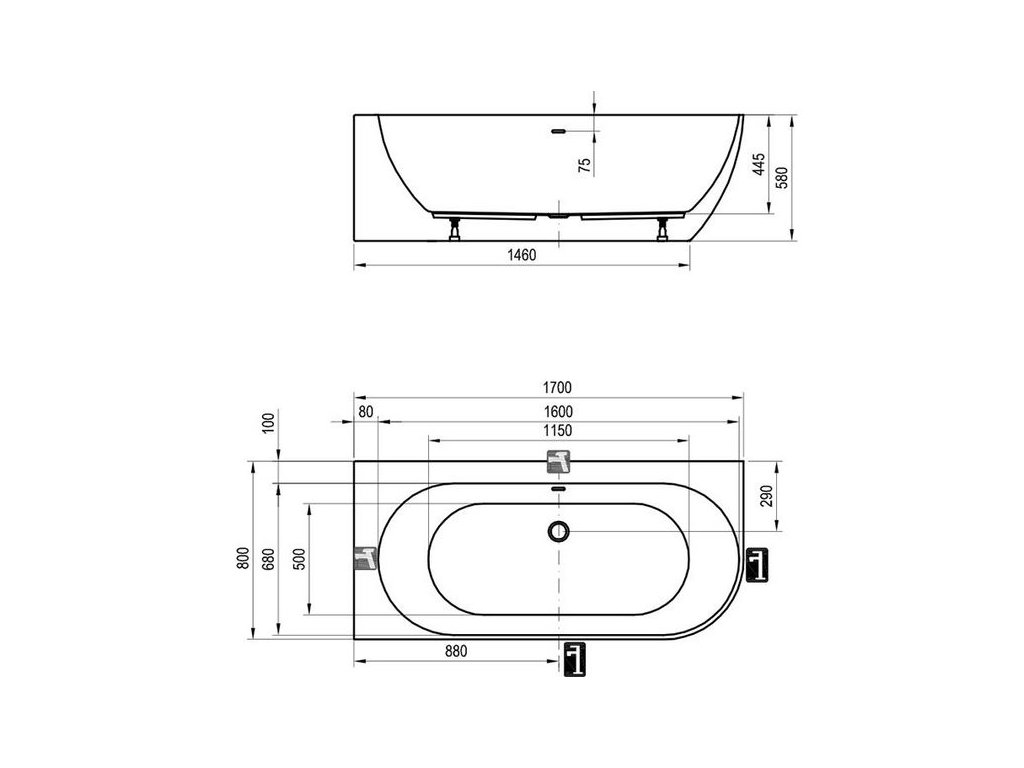 - vanový odtokový komplet (tj. přepad, pileta, sifon, zápachová uzávěra) a nožičky jsou součástí vany
