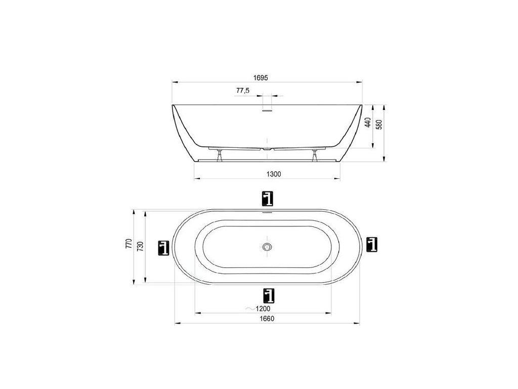 Vanu nelze doplnit vanovou zástěnou. Vanový odtokový komplet (tj. přepad, pileta, sifon, zápachová uzávěra) a podpora (nožičky) jsou součástí balení. K vaně nabízíme i volně stojící baterii zabudovatelnou do podlahy. Veškerý rozvod musí být veden podlahou (jak odpadový, tak přívody vody pro podlahovou baterii).