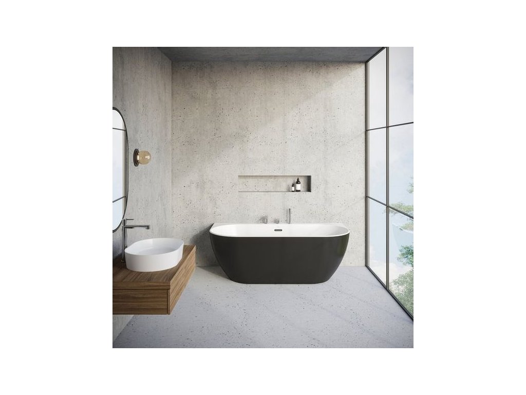 Vanu Freedom W nelze doplnit o vanovou zástěnu. Vanový odtokový komplet (tj. přepad, pileta, sifon, zápachová uzávěra - v černé barvě) a podpora (nožičky) jsou součástí balení.