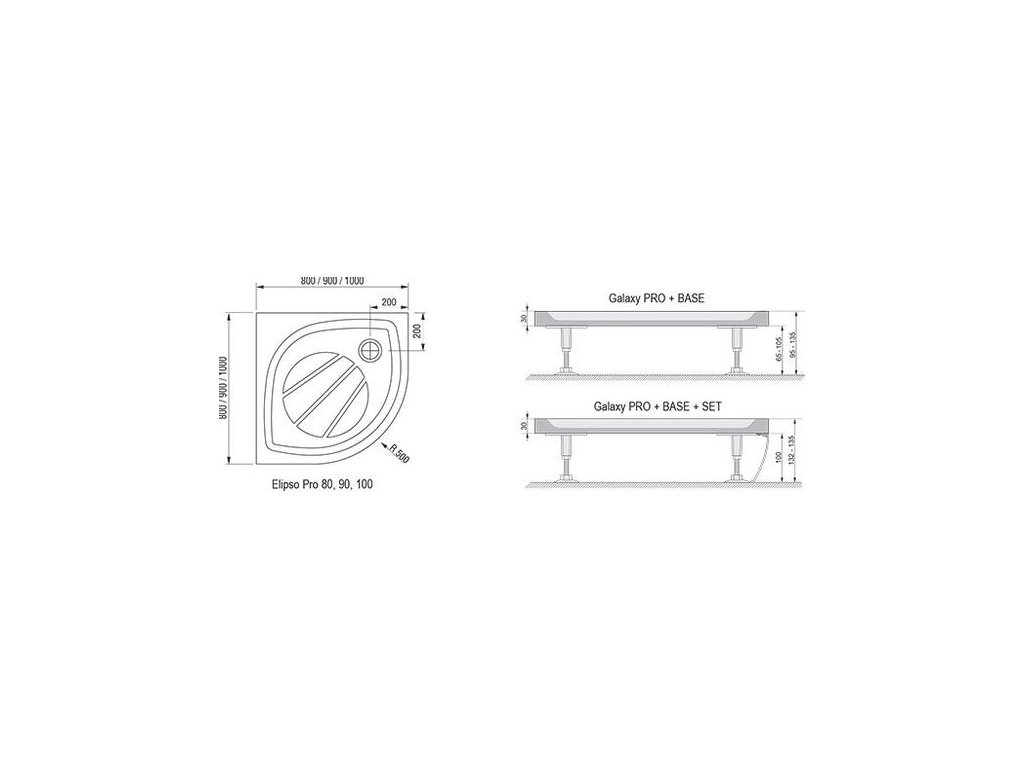 Ravak Galaxy Pro Elipso Sprchová vanička 90x90x3, bílá