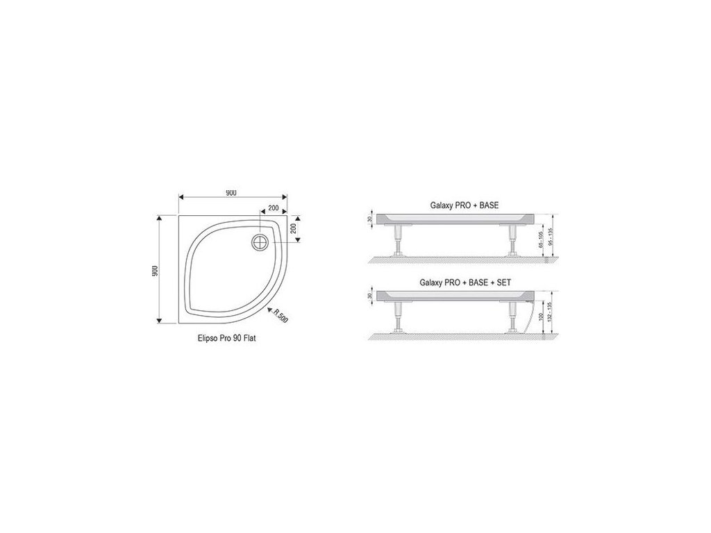 Ravak Galaxy Pro Flat Elipso Sprchová vanička 90x90x3, bílá