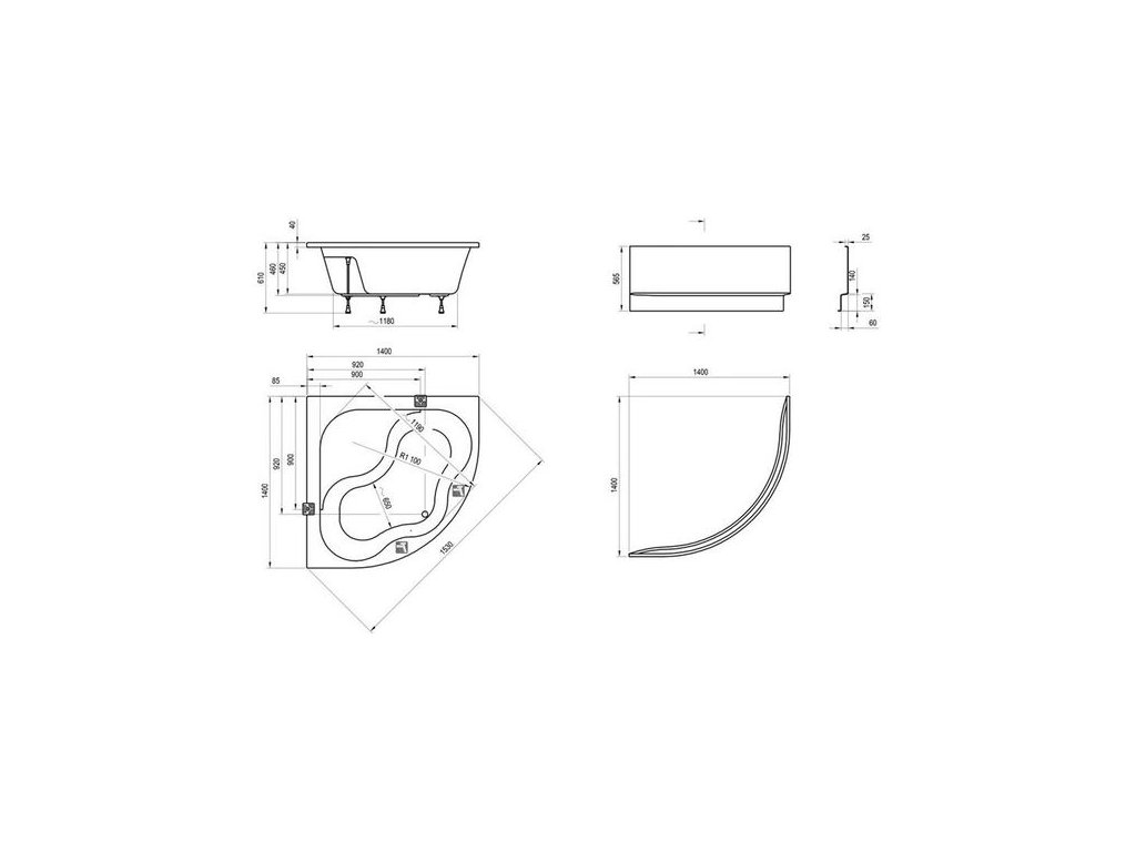 Ravak Gentiana Vana 140x140 rohová bez noh CF01000000