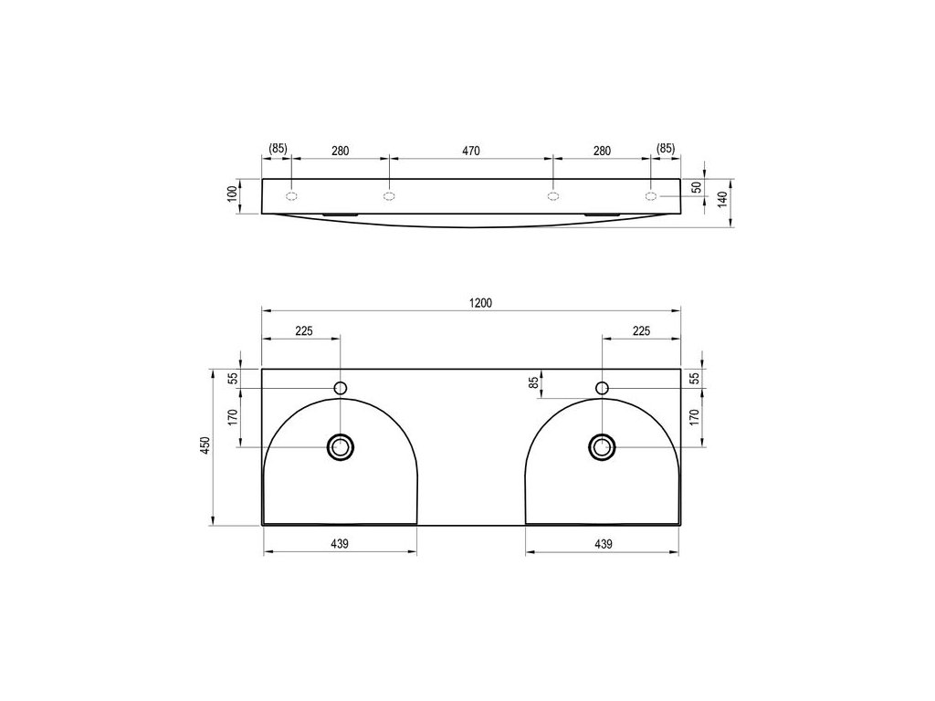 Ravak Lite Dvojumyvadlo 120x45 cm s otvory, bílá XJX01212001