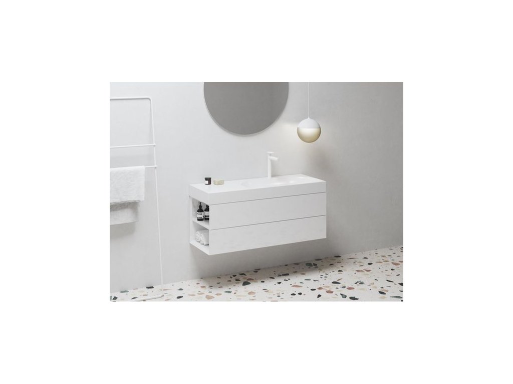 Hrany nábytku Lite jsou zkosené pod úhlem 45 stupňů a dokonale na sebe navazují. Precizní barevný vícevrstvý nástřik dodává skříňce dokonalý efekt povrchu. Otevírání zásuvek je vyřešeno bez použití viditelného madla. Zásuvky skříněk pod umyvadlo jsou vybaveny kvalitním systémem automatického dovření s pomalým dojezdem.