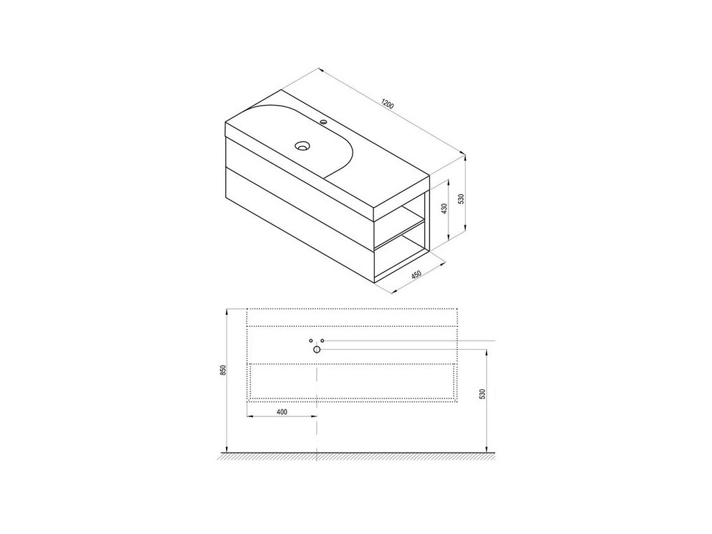 Skříňka je vybavena dvěma čelními zásuvkami a dvěma bočními policemi. Zásuvka skříňky se otevírá tahem za boční hranu čela.