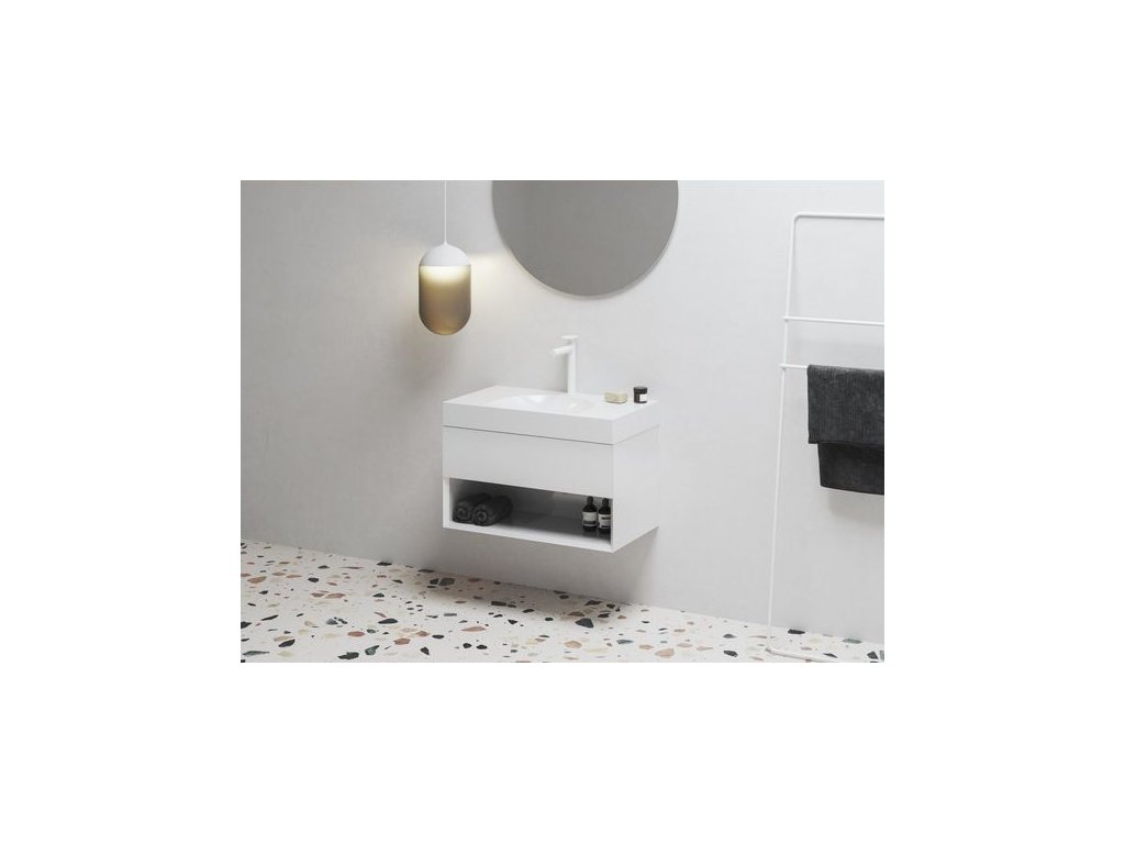 Je vybavena čelní zásuvkou a policí. Zásuvka skříňky se otevírá tahem za spodní hranu čela.