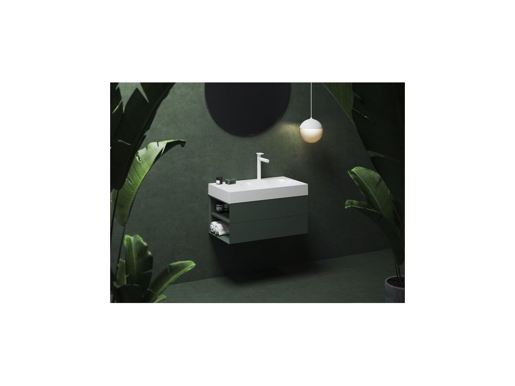 Ravak Lite Skříňka pod umyvadlo 80x45 cm s bočními poličkami, levá - grey green X000001876
