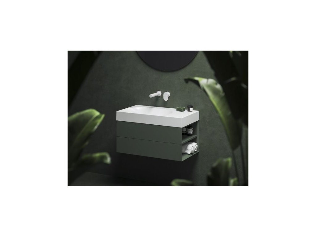 Hrany nábytku Lite jsou zkosené pod úhlem 45 stupňů a dokonale na sebe navazují. Precizní barevný vícevrstvý nástřik dodává skříňce dokonalý efekt povrchu. Otevírání zásuvek je vyřešeno bez použití viditelného madla. Zásuvky skříněk pod umyvadlo jsou vybaveny kvalitním systémem automatického dovření s pomalým dojezdem.