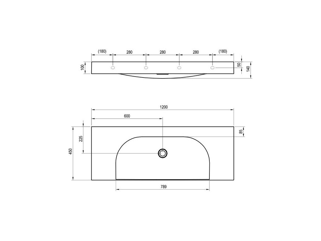 Ravak Lite Umyvadlo 120x45 cm bez otvoru, bílá XJX01312000