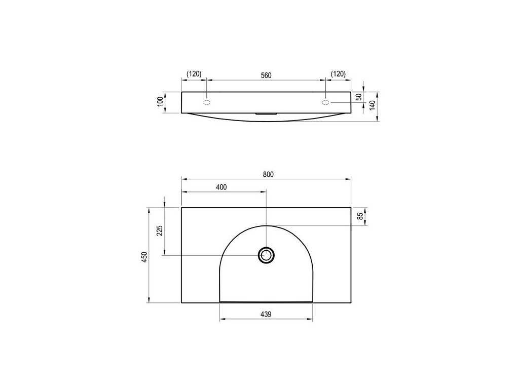 Ravak Lite Umyvadlo 80x45 cm bez otvoru, bílá XJX01380000