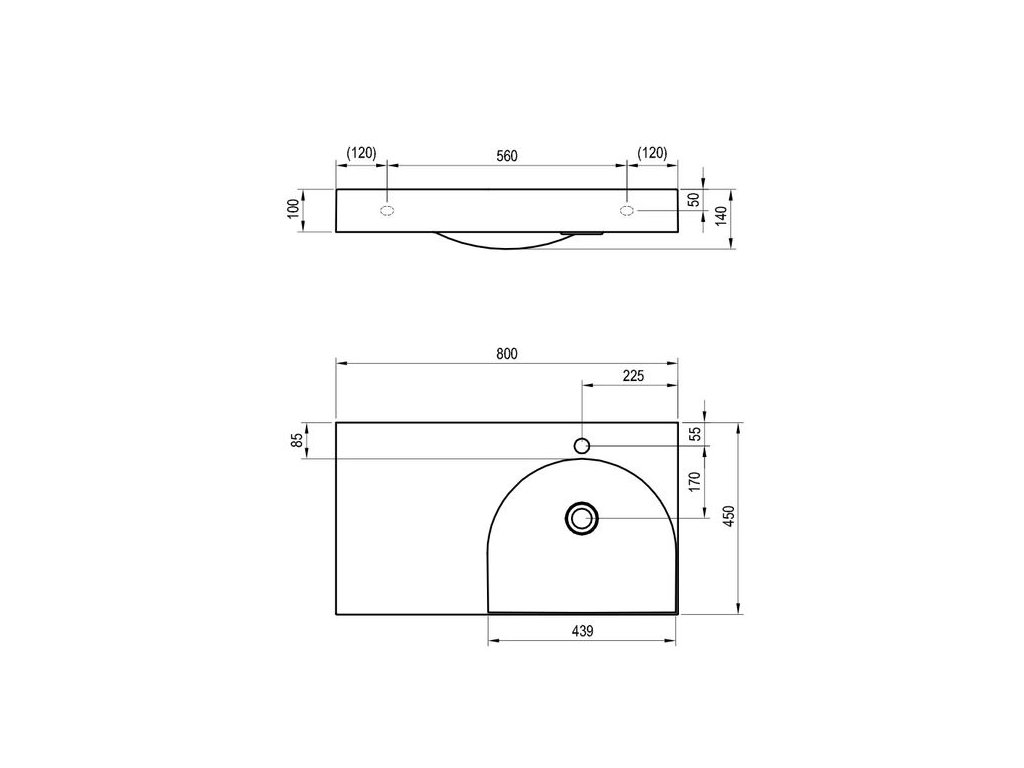 Ravak Lite Umyvadlo 80x45 cm s otvorem, bílá - odkládací plocha vlevo XJXL1280000