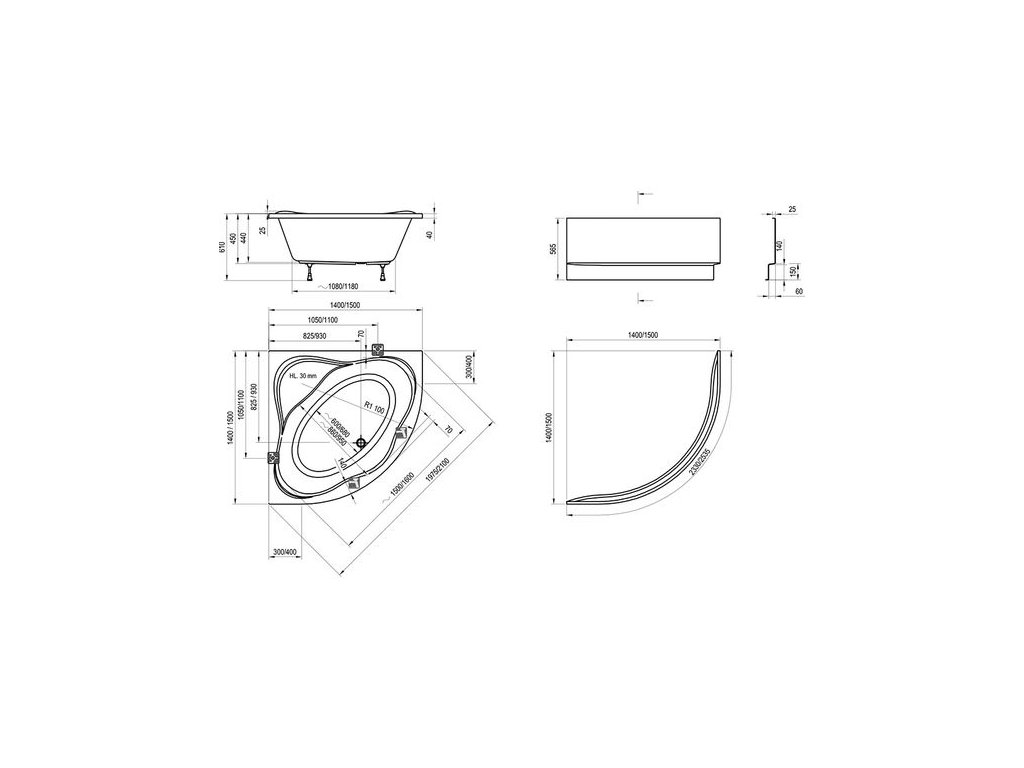 K vaně lze pořídit příslušenství (podporu, vanový odtokový komplet s přepadem) nebo praktické doplňky – čelní panel. Součástí vany je integrované, pohodlné sedátko nad hladinou vody.