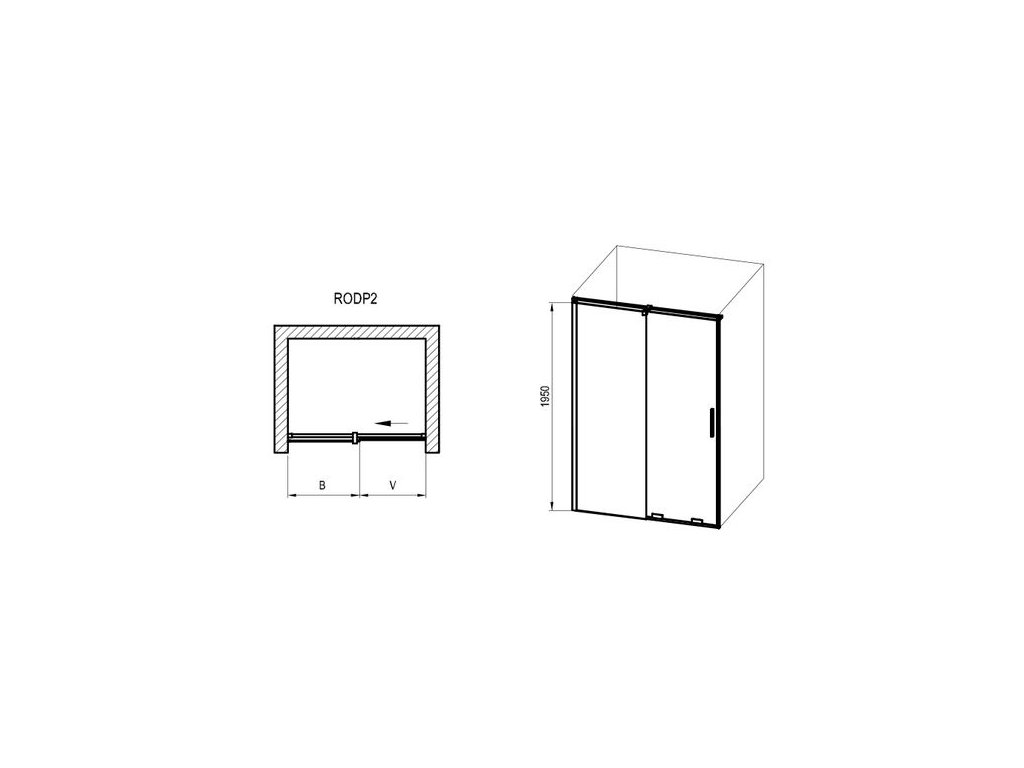 Sprchové dveře se skládají z pevného dílu a posuvného dílu, který se pohybuje pomocí spodních pojezdových koleček v kolejničce. Varianty vstupu zleva nebo zprava docílíte posunutím pevného skla na levou/pravou stranu a vertikálním otočením posuvného dílu o 180° při montáži. Výrobek se montuje do vyzděné niky, nebo v kombinaci s pevnou stěnou ROPS přímo na podlahu se zabudovaným odtokovým žlabem či podlahovou vpustí nebo na vaničky. Vzpěra je součástí balení.
