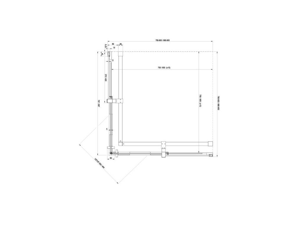 Sprchový kout se skládá ze dvou pevných a dvou posuvných dílů, které se pohybují pomocí spodních pojezdových koleček v kolejničce. Montuje se do obloženého rohu koupelny přímo na podlahu se zabudovaným odtokovým žlabem či podlahovou vpustí nebo na vaničky. Vzpěry jsou součástí balení dveří.