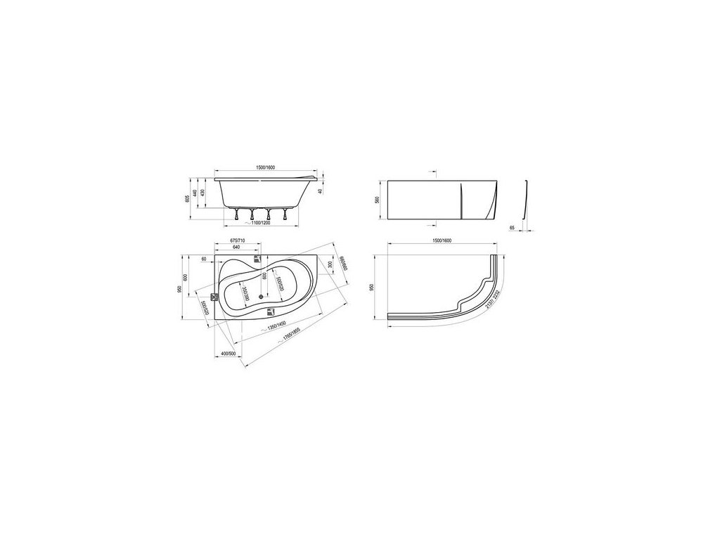 Ravak Rosa 95 Vana 160x 95 levá bez noh C571000000