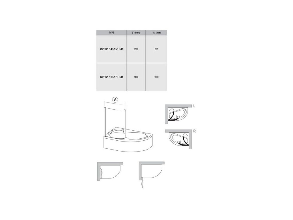 CVSK1 v pravém/levém provedení je nutno naplánovat podle provedení a rozměru vany Rosa (Rosa II a Rosa 95). Mechanismus umožňuje sklopení v úhlu 180°.