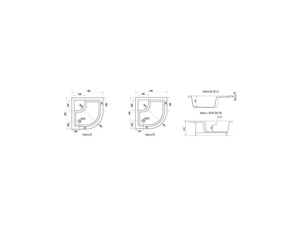 - doplňky: vaničkový sifon Sabina, nožičky (podpora), příslušenství k montáži