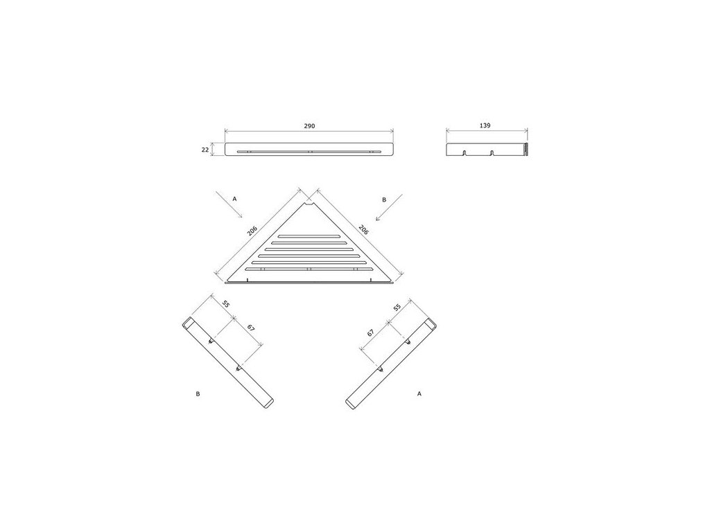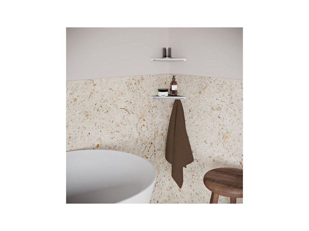 Rohová polička Slim C představuje designový doplněk pro moderní koupelnu. Hodí se k vytvoření odkládacího prostoru do sprchového koutu, nad vanu, k umyvadlu apod.