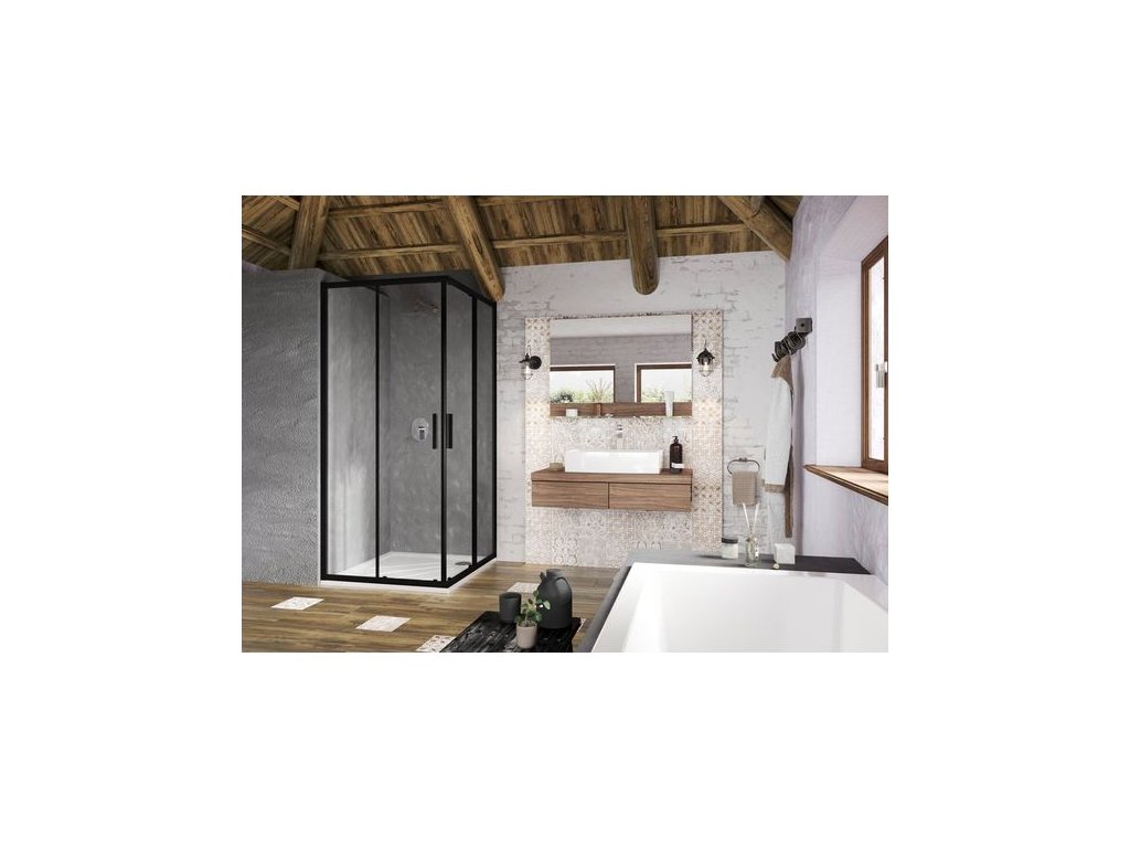 Výrobek tvoří dva pevné díly a dva díly jako posuvné dveře. Montuje se do obloženého rohu koupelny na vaničku nebo přímo na podlahu se zabudovaným odtokovým žlabem či podlahovou vpustí.