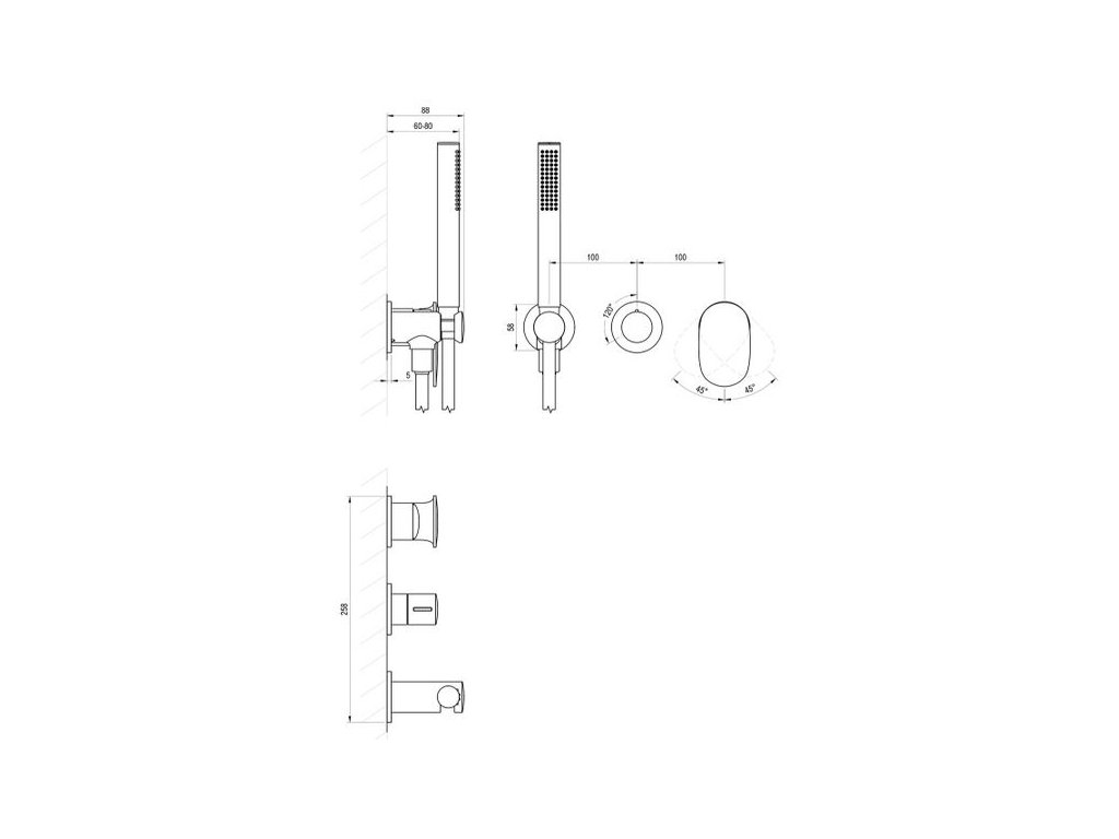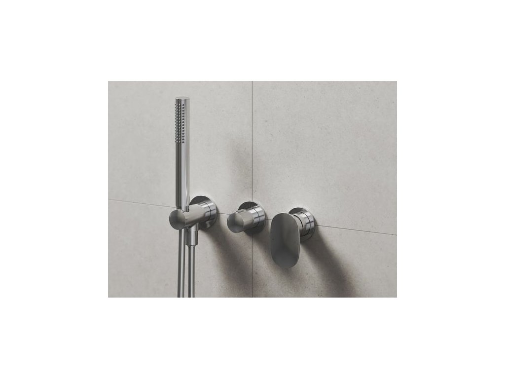 Podomítková baterie se sprchovým setem (hadice a ruční sprcha) má vlastní instalační těleso, není určená pro R-box.