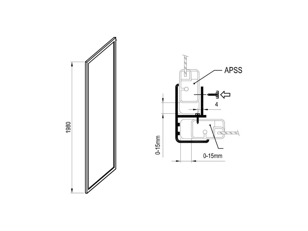 Součástí balení je rohový spojovací profil pro připojení ke sprchovým dveřím či sprchovému koutu. K uchycení na stěnu se použije ustavovací profil, který obsahuje balení sprchových dveří či koutu. Případné nerovnosti stavebního otvoru lze kompenzovat pomocí nastavovacích profilů NPS. Pevná stěna APSS se dá kombinovat se sprchovými dveřmi ASDP3 k vytvoření sprchového koutu tvaru „L“. Pomocí dvou pevných stěn APSS a sprchových dveří ASDP3 vytvoříte sprchový kout ve tvaru „U“.
