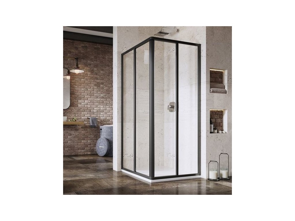 Sprchový kout rohový posuvný čtyřdílný se vstupem z rohu
