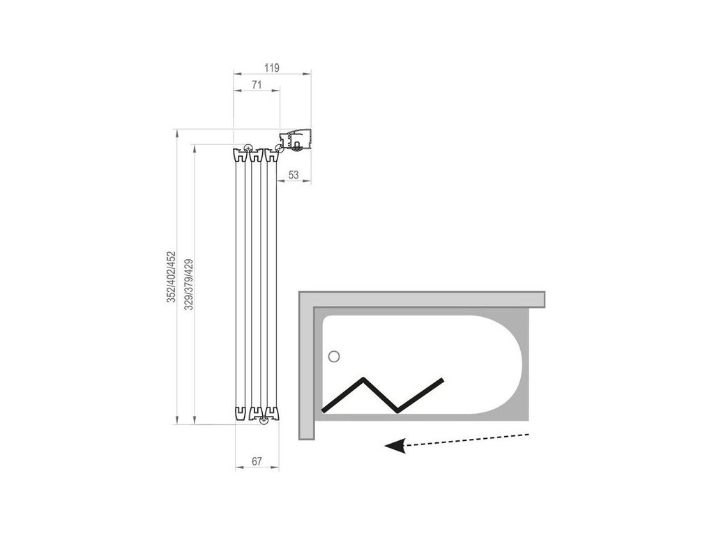 Zástěna se skládá ze tří pohyblivých dílů, které lze zcela složit do vnitřního prostoru nad vanu. Vanovou zástěnu lze instalovat na vanu BeHappy a k obdélníkovým vanám s rovným horním lemem (Classic, Sonata, Vanda II a Lilia) nebo na jakoukoli klasickou obdélníkovou vanu s rovným horním lemem. Standardní výška zástěny je 1400 mm.