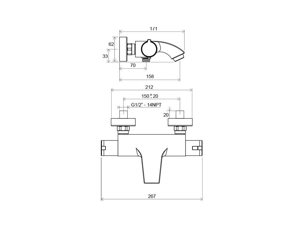 Ravak Termo Baterie vanová termostatická nástěnná X070046