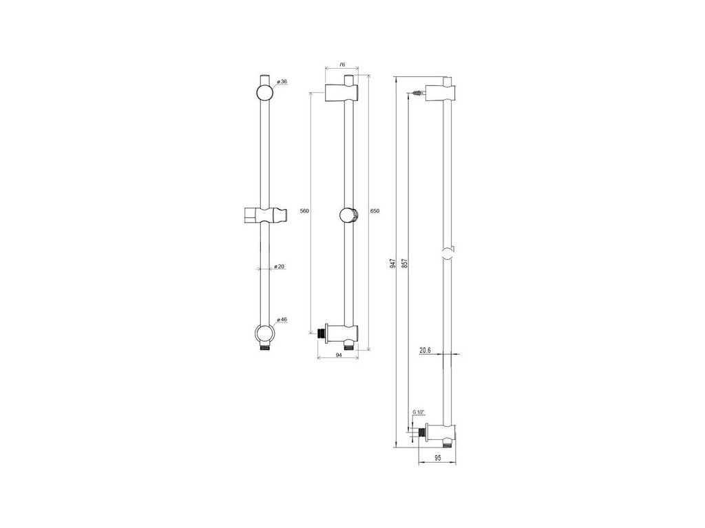 - stěnový vývod vody přímo v tyči s G1/2" závitem vnějším