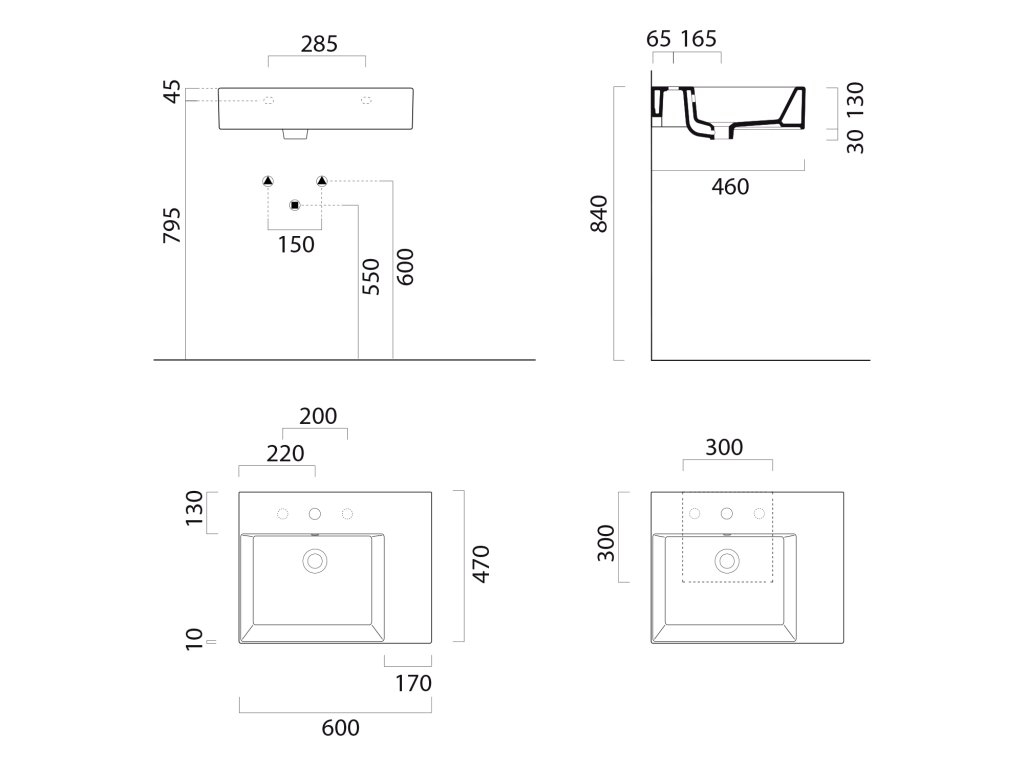 - umyvadla lze dodat i v retifikované verzi (se zabroušenou spodní plochou) pro použití na desku, s příplatkem dle platného ceníku