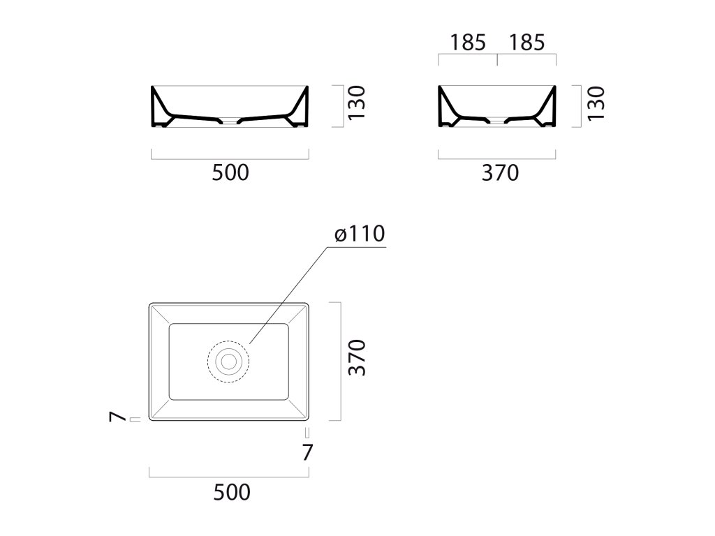 - Hranatá umyvadla s decentně zaoblenými rohy a štíhlou hranou
