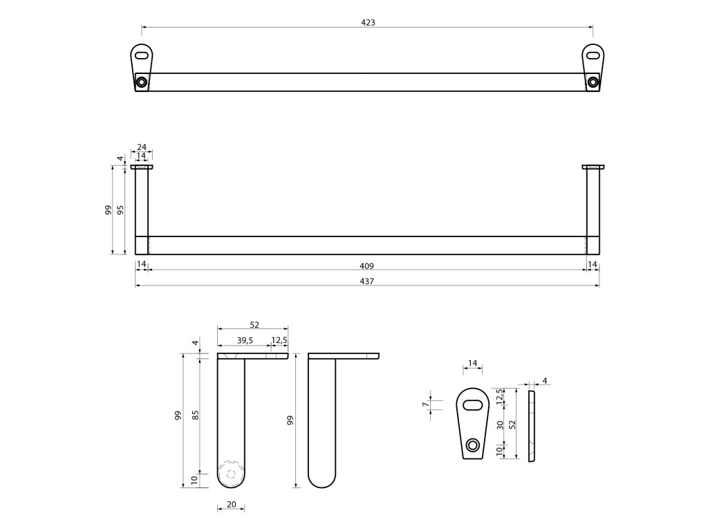 GSI KUBE X/NORM čelní držák ručníků 50cm, chrom