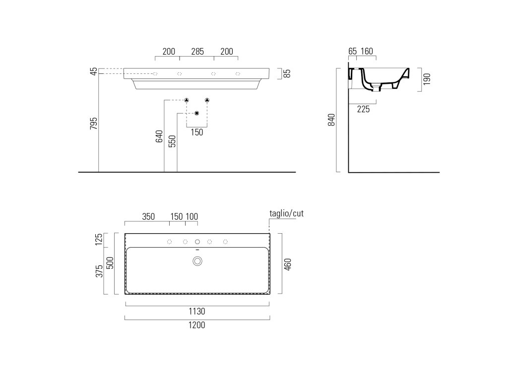 GSI NUBES keramické umyvadlo 120x50cm, bílá ExtraGlaze
