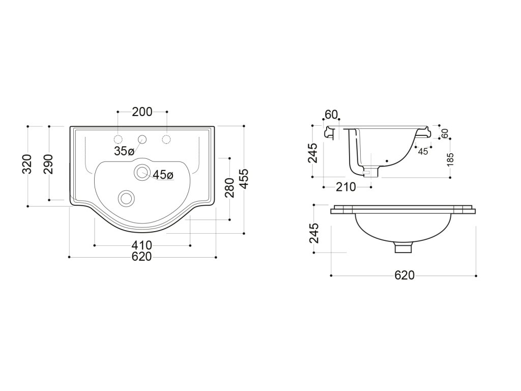 Kerasan RETRO keramické umyvadlo zápustné, 62x45,5cm, černá mat