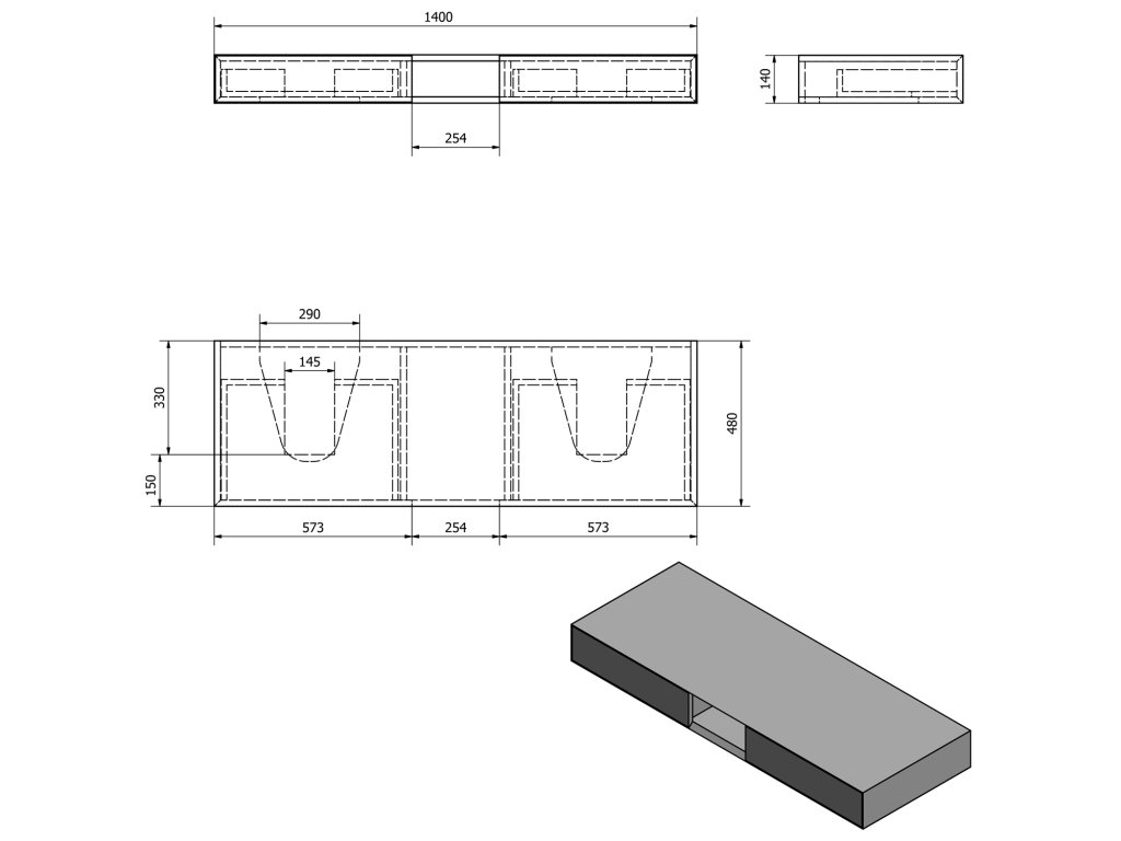 Sapho umyvadlová skříňka 140x14x48cm, dub černý