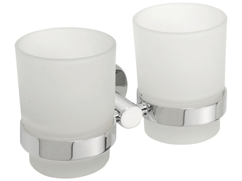 Sapho X-ROUND dvojitý držák skleniček, mléčné sklo, chrom