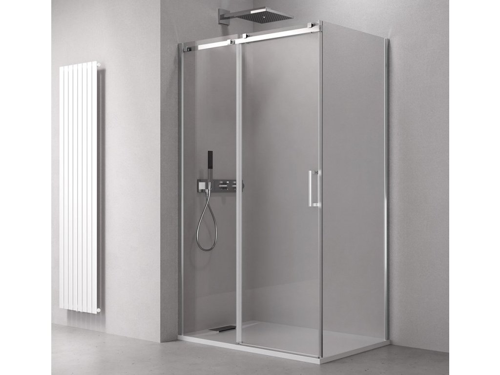 - Dveře jsou děleny na část posuvnou a pevnou - umožňují variabilní instalaci s levým nebo pravým otevíráním